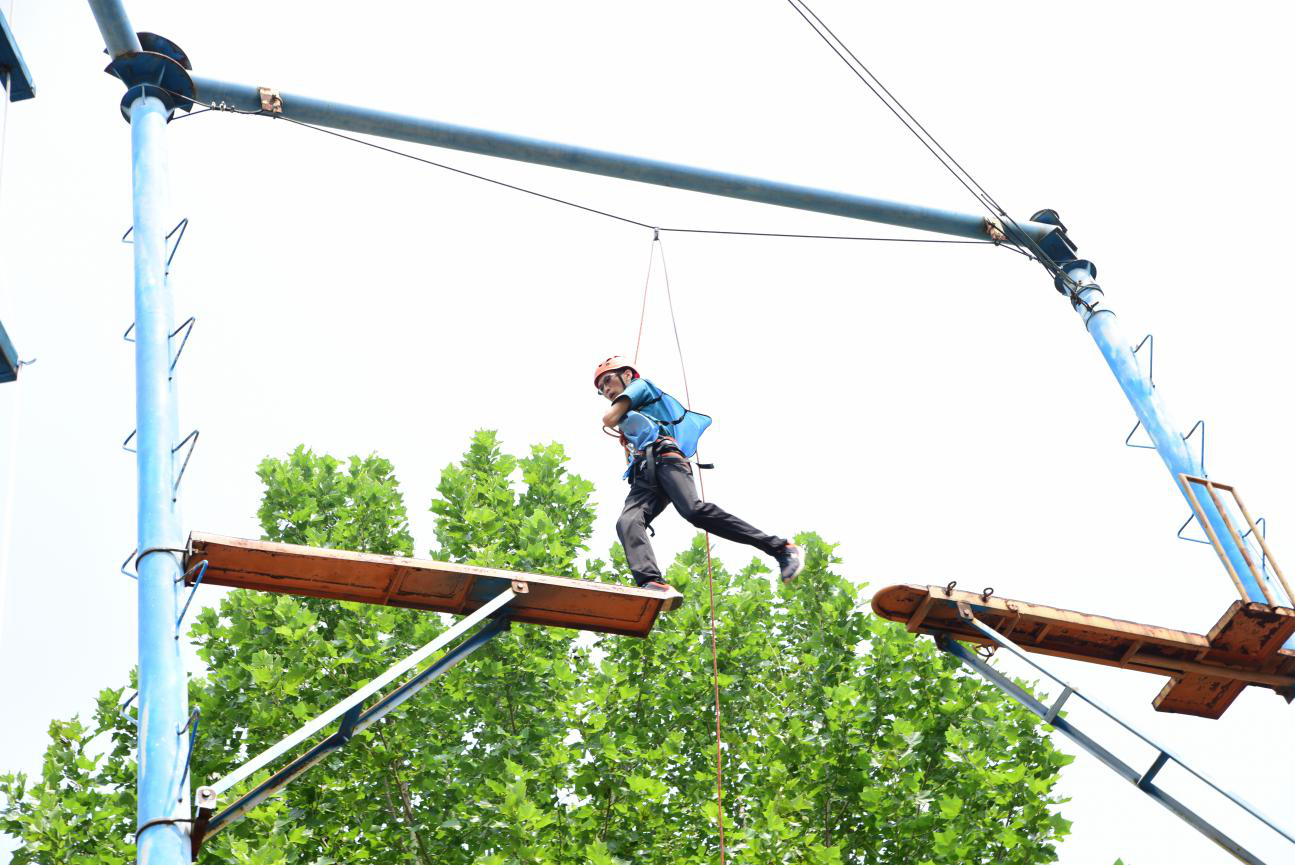 高空斷橋項目:極有挑(tiāo)戰性的項目(mù),順著立杆爬上在8米高的平台上,在寬度30公(gōng)分行(háng)走,在間隔距離80公分的斷橋上跳過;對每個人而言,真(zhēn)正挑戰的對象是自己而不(bú)是別人或其他客觀因素,這是培養膽量、意誌突破(pò)自我的一項活動。