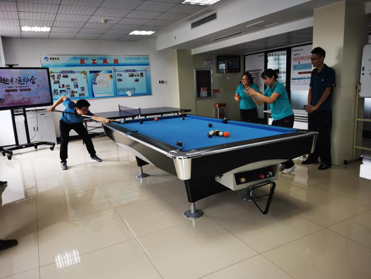 首先(xiān)進行的比賽項目為台球,抽簽決定對手,兩兩(liǎng)對決。台球比賽場(chǎng)麵精彩萬分;運動員們情緒高漲、活(huó)力四射、鬥誌昂揚;觀眾看得興高采烈(liè)。台球比賽結束時,還仍感(gǎn)覺意猶未盡、回(huí)味綿長(zhǎng)。