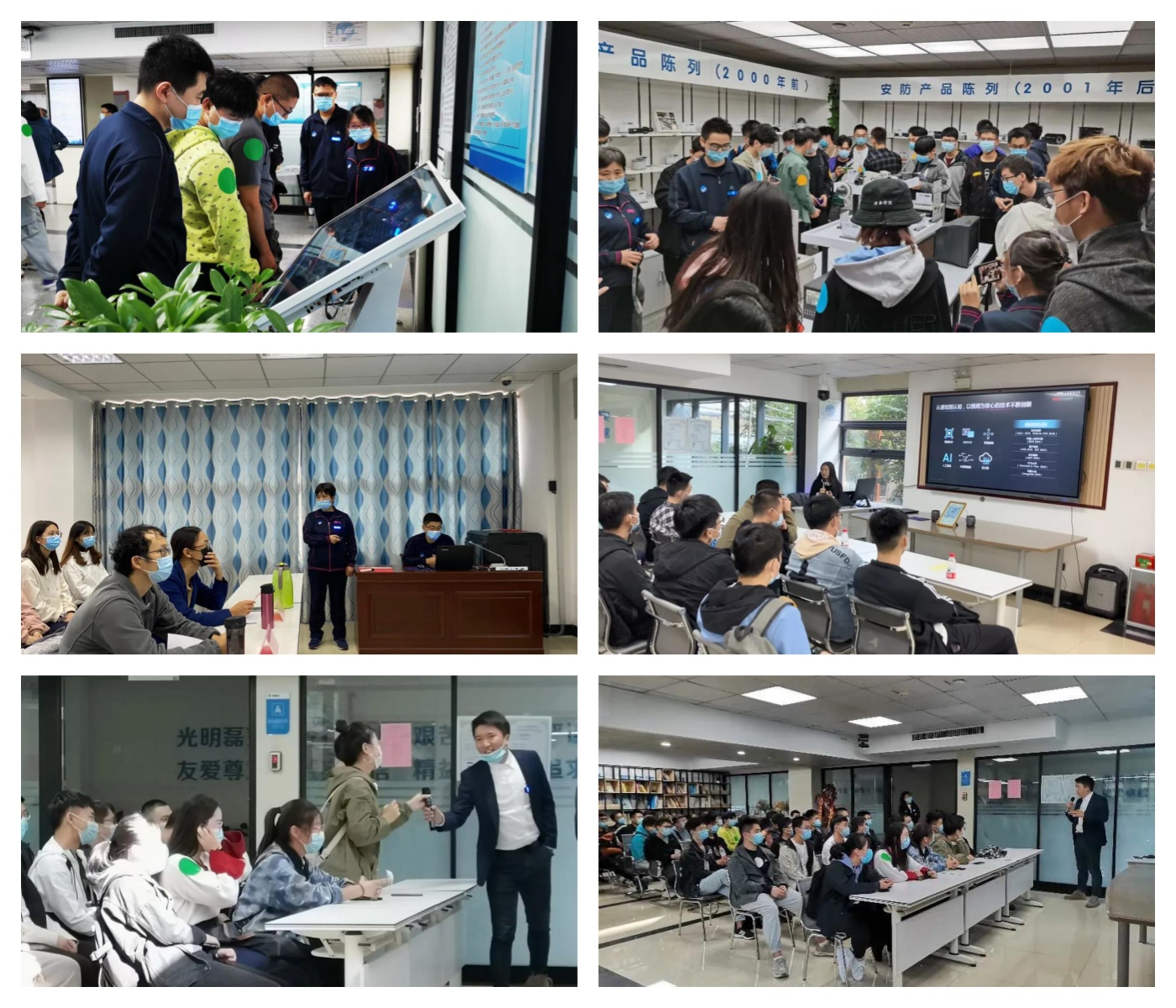 此次前來(lái)認知實(shí)習(xí)的學生來自山東建築大學信電(diàn)學(xué)院建築電氣與智能化和電氣(qì)工程及其自動化專業,共6個班,合計247人。疫情(qíng)期間,為了響應(yīng)國(guó)家防疫政策(cè),保障公共衛生安全,我們在實習開始前增加了檢查健康碼和體溫檢測環節,並全程佩戴口罩。為了讓同學們在各(gè)區域參觀時有更好的體驗,我們將人(rén)員分組,並貼了4種顏色標識進行區分,方便管理引導。