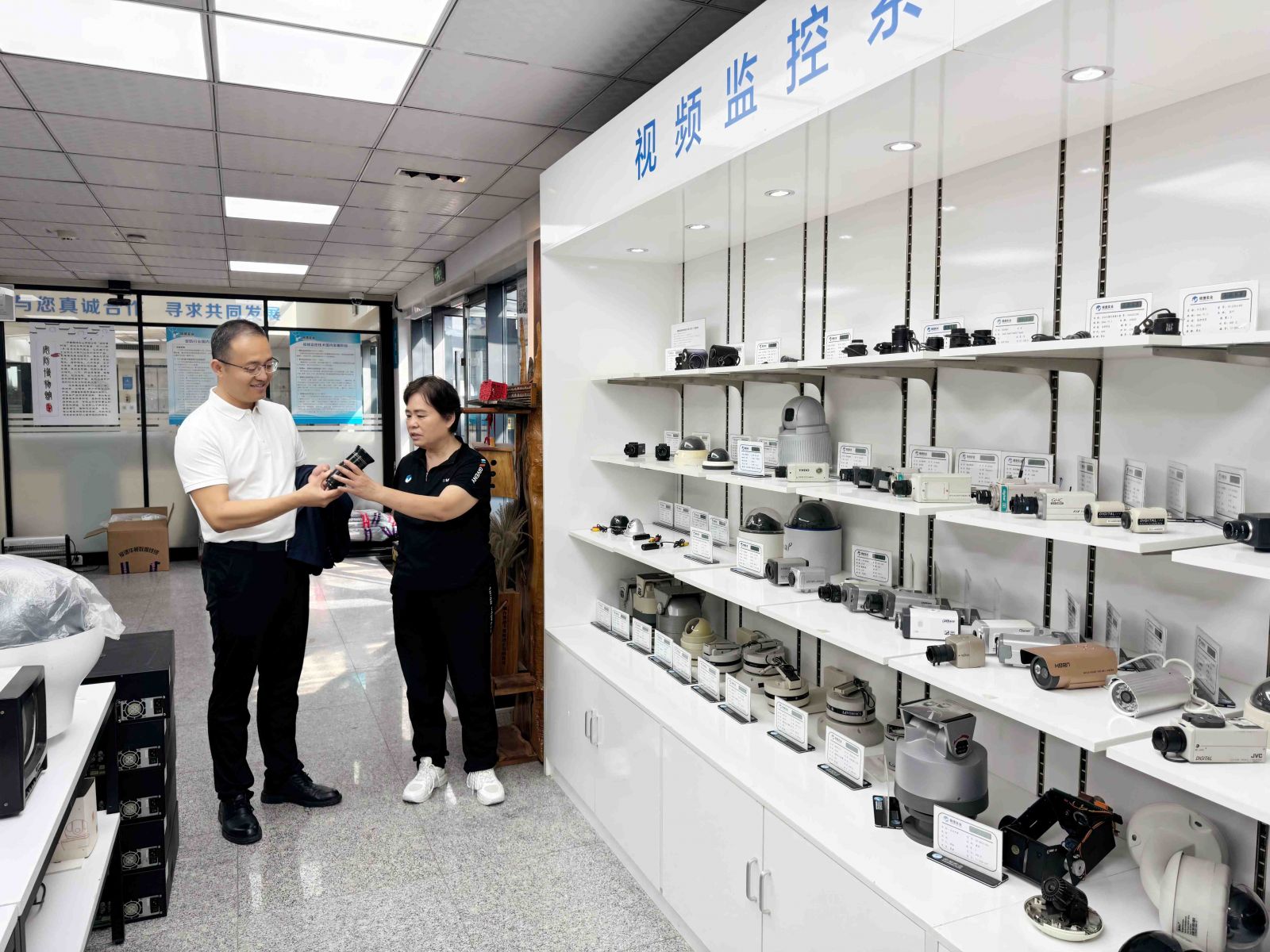 考察伊(yī)始,在郭總(zǒng)的引導下,先後參(cān)觀了智慧教(jiāo)室、人工智能(néng)訓練師實訓室、安裝工(gōng)藝(yì)實(shí)訓區、係統調試實訓室、工程材料展示區、工具實訓室等核心區域。在安防博物館內(nèi),館內收(shōu)藏的上世紀八十年代(dài)至今的 500 餘件安防(fáng)展品引發考察人員的濃厚興趣。對(duì)學校通過實(shí)物史料傳承行業文化的舉措給予高度肯定,並表示(shì):讓學(xué)員讀懂行業發展脈絡(luò),培養深層次的行業認知,是技能培訓中難得的文化滲透,對學員行業認知培養極具價值。